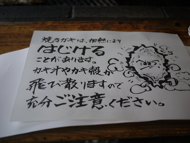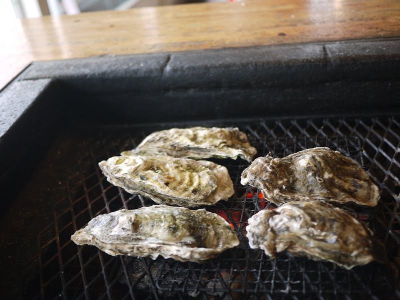 大型牡蠣5つを炭で焼いていただきました。