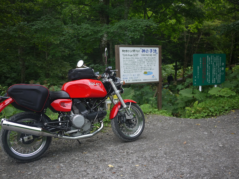 およそ50km走り、最後の1km深い砂利のダートという過酷な条件をクリヤするとこんな神秘的なところが待っていました。「神の子池」です。