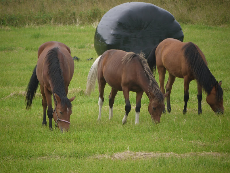 道産子がおいしそうに草を食べていました。